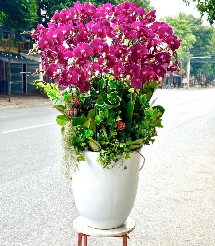 Không phải ngẫu nhiên mà Hoa Mãi Mãi luôn được nhắc tên đầu tiên khi nói đến Cửa Hàng Lan Hồ Điệp Nổi Tiếng Lang Chánh, Thanh Hóa. Tại đây, mỗi chậu lan đều là một tuyệt tác nghệ thuật được chăm chút tỉ mỉ – từ dáng cắm, phối màu đến phụ kiện trang trí. Dù là lan hồ điệp trắng tinh khôi, tím huyền bí hay vàng quyền quý, tất cả đều mang một thần thái sang trọng riêng biệt.